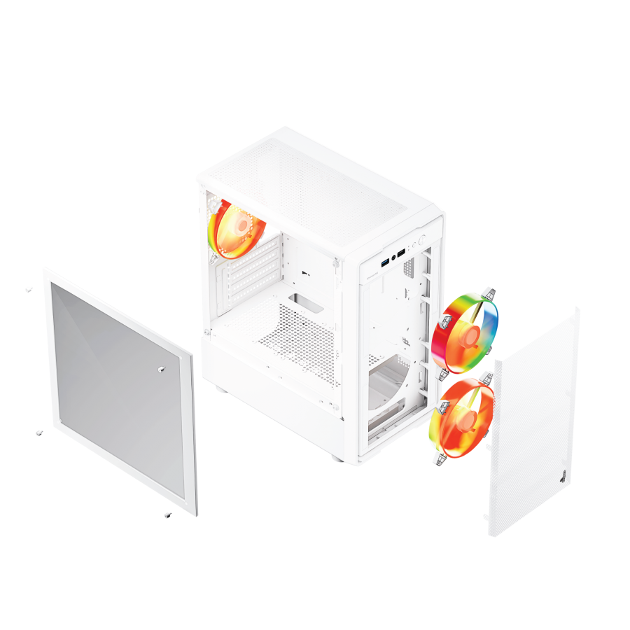 Step up your game with FINGERS 3D-Vision-M2 – a Micro ATX PC cabinet that blends visual brilliance with uncompromising performance. Featuring 3D toughened glass panels on the front and left sides, paired with a mesh-design front panel for enhanced airflow, it puts your high-performance build on full display.