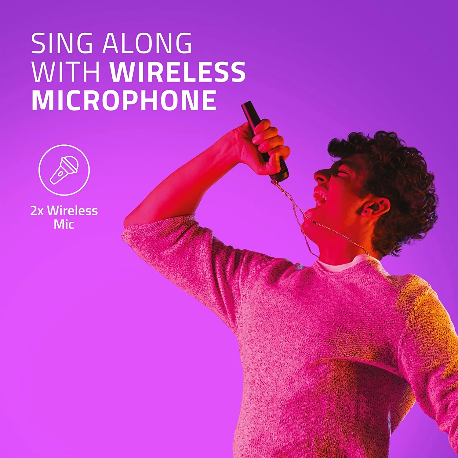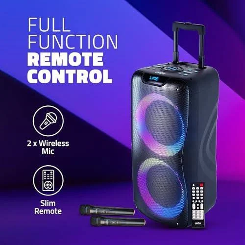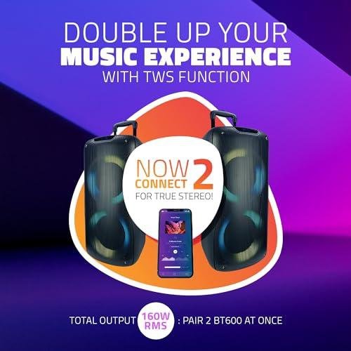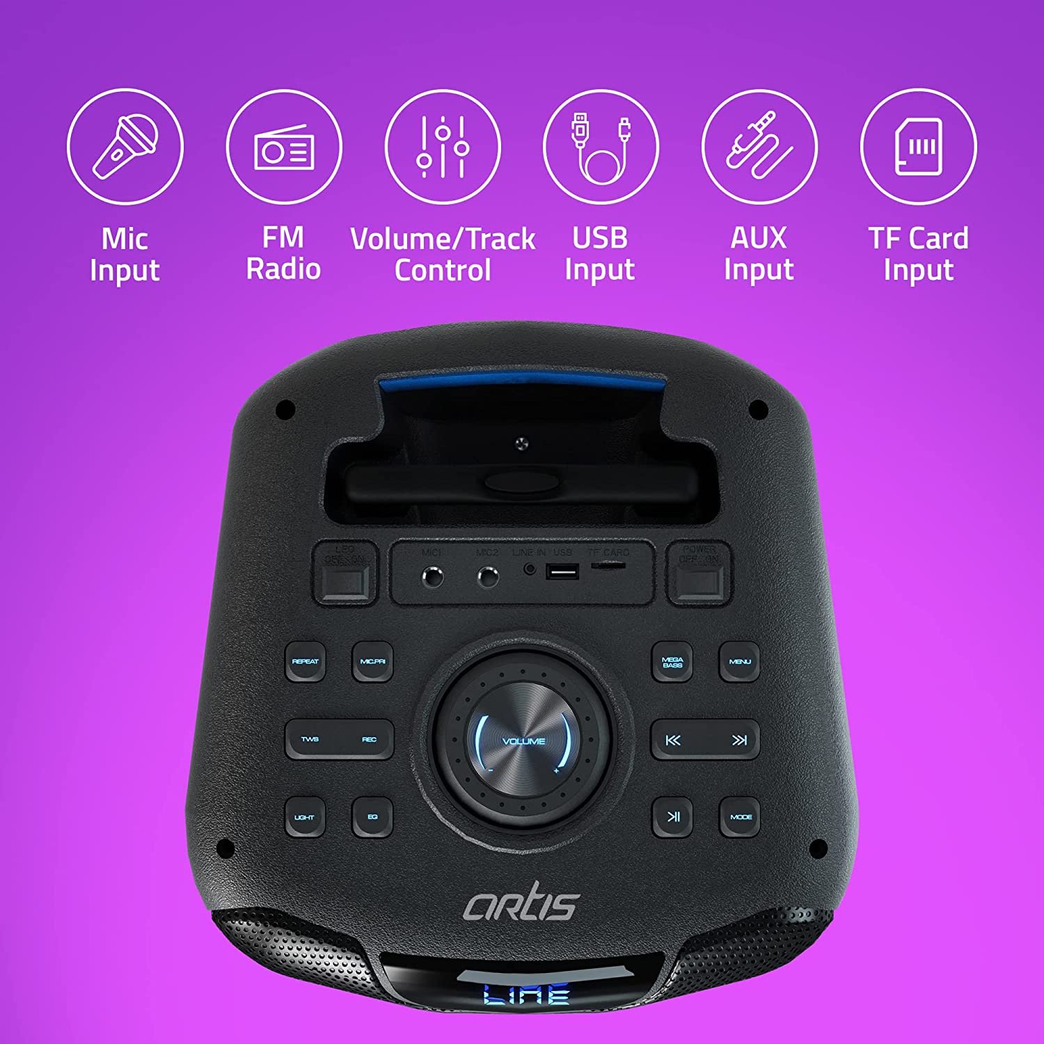 Artis BT600 Wireless Bluetooth Trolley Speaker with 7 colors LED Lights, 2 Wireless Mic, Remote Control, FM Radio & Aux in/USB/TF Card Reader Input (80W RMS Output)