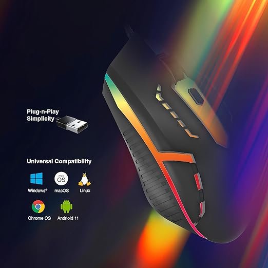 FINGERS BlazingHit Wired USB Mouse (Advanced Optical Technology with RGB Lights, Adjustable 800-2400 DPI Switch, 4 Buttons, Plug-n-Play, Windows?, macOS, Linux & Chrome OS), Matte Black