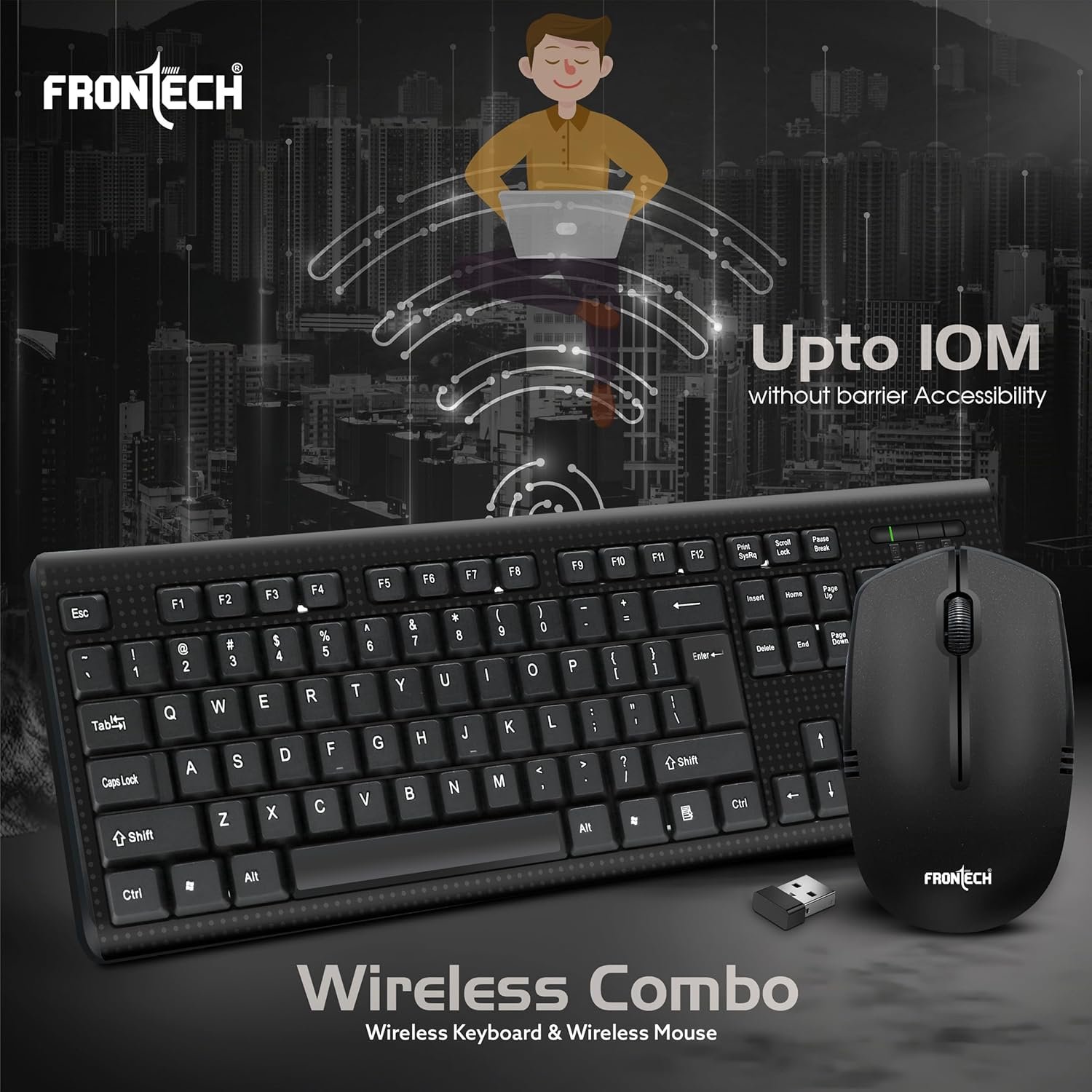 FRONTECH Wireless Keyboard and Mouse Combo |1000 DPI | Membrane Keys with Adjustable Heights | USB Plug & Play | Ergonomic & Comfortable Design, (KB-0028, Black)