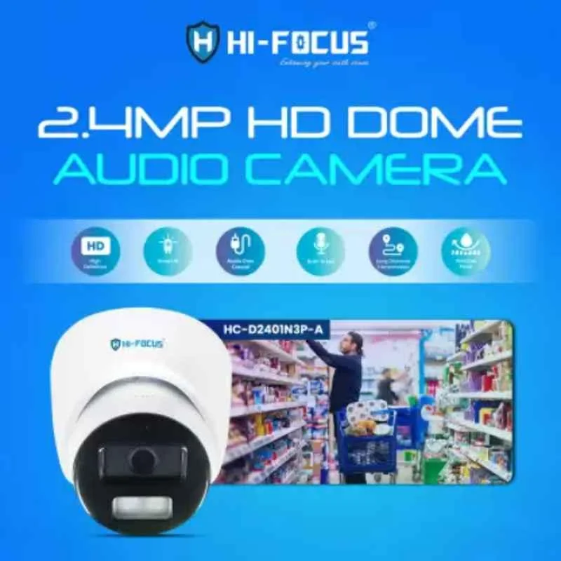 HI Focus 2.4MP White Analog HD Audio Dome Security Camera, HC-D2401N3P-A