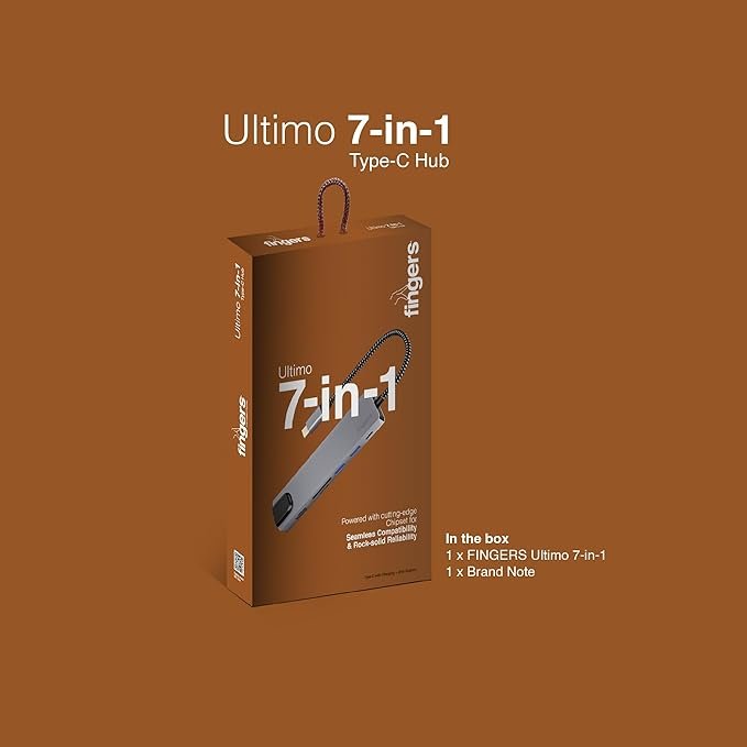 FINGERS Ultimo 7-in-1 Type-C USB Hub (2 x USB 3.0 + HD Interface + Ethernet Giga LAN 10/100/1000M + USB Type-C (PD Charging up to 100 W & Data Transfer) + Micro SD Card + SD Card) – Space Grey